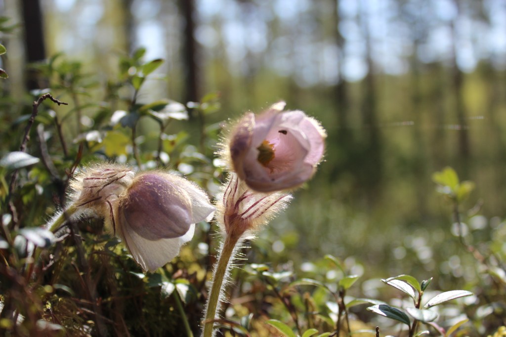 Tiedustelen seurakunnan taloustoimistosta, huomioidaanko, että kyseisessä männikössä kasvaa rauhoitettu kangasvuokko. Minulle vastataan, että jos hakkuupäätös tehdään, kasveja ei tarvitse suojella. Aika jännää. Uhanalainen kasvi on rauhoitettu. Paitsi, ettei olekaan, jos sen päältä halutaan kaataa koko metsä. Saamme kuitenkin nauhaa, jota on määrä kiinnittää niin sanottuihin säästöpuihin.